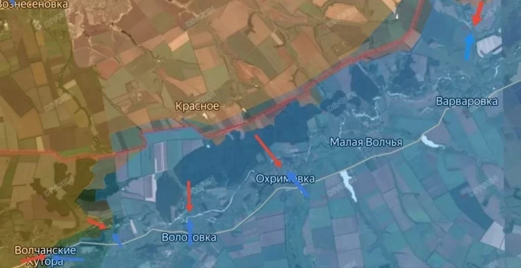 Кроме того, армия России ведёт бои на подступах к Вильче. Вместе с этим наши подразделения постепенно продвигаются к Бочково и Охримовке, ведя бои в центре и на востоке Волчанских Хуторов.