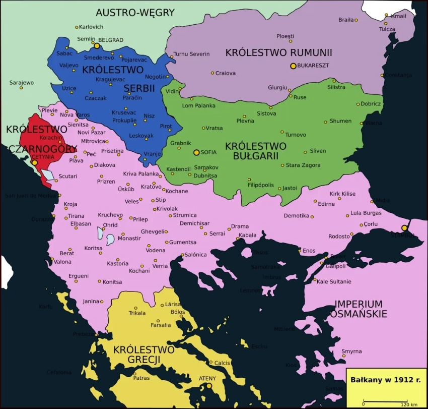 Обострение противоречий привело Балканы к серии войн. Осенью 1912 г. союз Болгарии, Греции, Сербии и Черногории, множество соплеменников которых оставались на территории Османской империи, начал войну против османов. Названная 1-й Балканской, война стала победоносной для союзников, но по её исходу они перессорились. В ходе войны сербские войска заняли Македонию, часть которой по заключённому между союзниками договору должна была отойти Болгарии. Болгары потребовали отдать им оговорённую часть, но сербы и заключившие с ними антиболгарский союз греки решили не отдавать ничего.