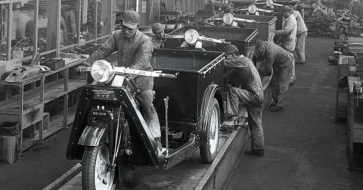 Сборка мотороллеров на заводе в Хиросиме