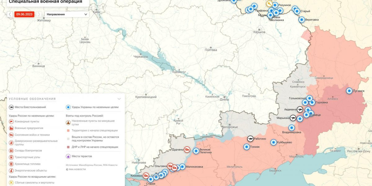 Последние новости о ходе военной спецоперации на Украине на сегодня, 9 июня 2023 года, новая карта боевых действий на Украине в материале.
