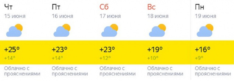 В Челябинске днём ожидаются до +19…+21, переменная облачность, преимущественно без дождей. Северный и северо-восточный ветер будет дуть со скоростью 4–9 метров в секунду. По данным долгосрочного прогноза от сервиса «Яндекс.Погода», в четверг ожидается до +25, и это будет самый тёплый день на текущей неделе.