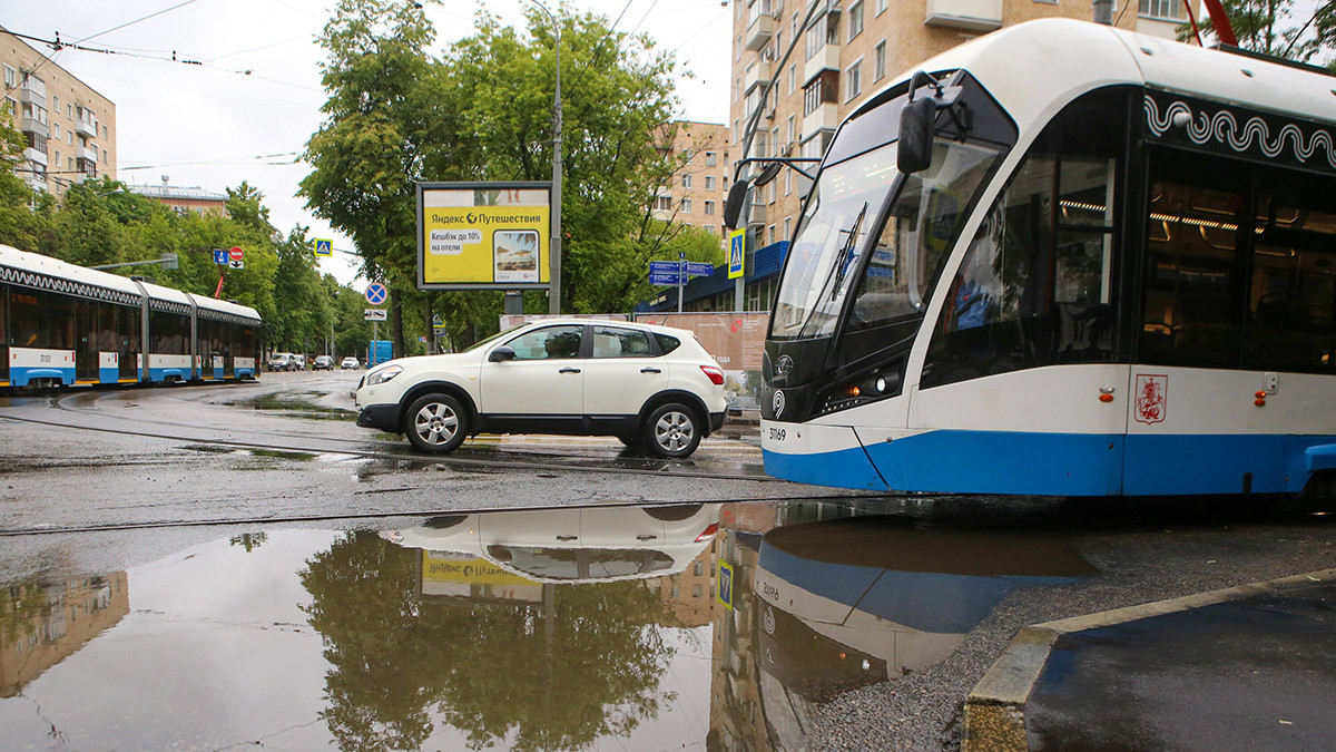 В Москве ряд трамвайных маршрутов задерживается на Русаковской улице