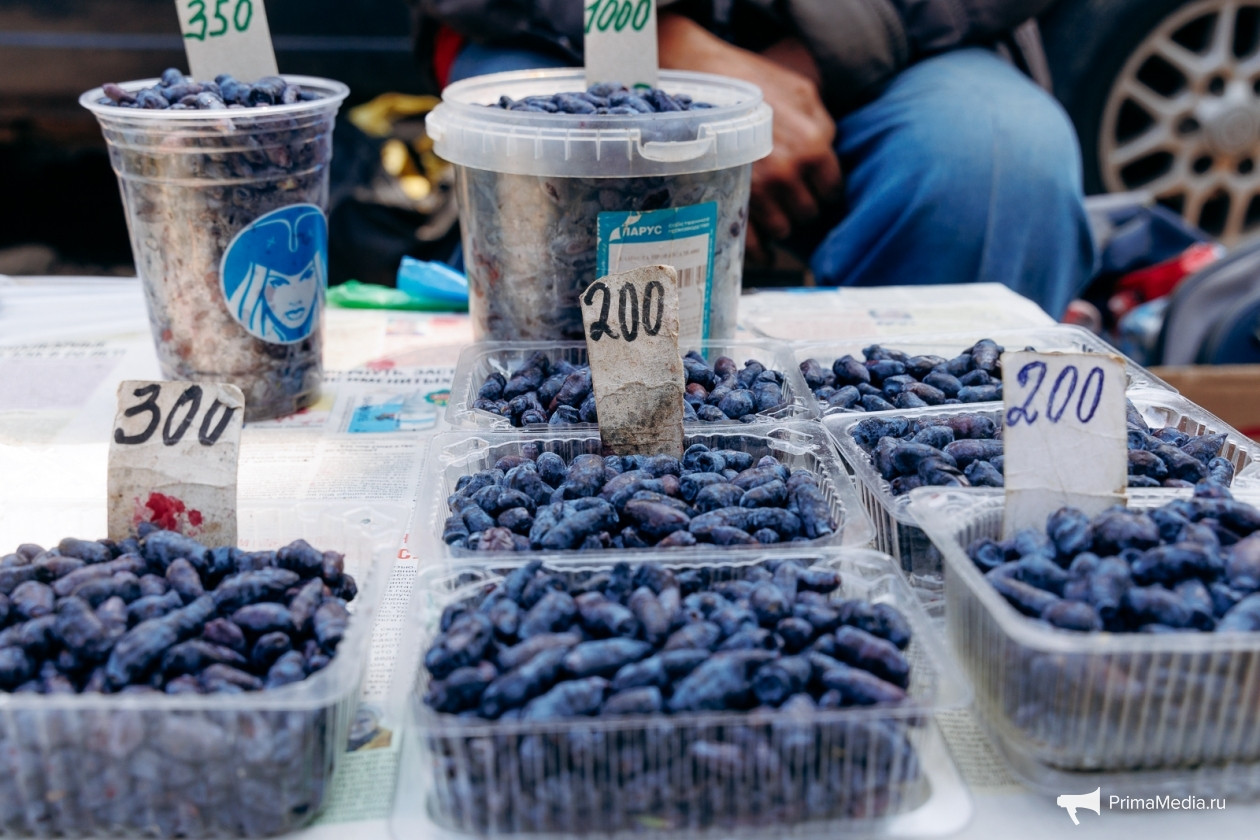 Жимолость еще не так сильно заполонила прилавки на базаре, но и по цене она выходит существенно дороже — на рынке или ярмарке можно купить за 700-800 рублей за кг, а у бабушек возможно найти и за 600. Хотя встречаются места, где продают за 1000 рублей.