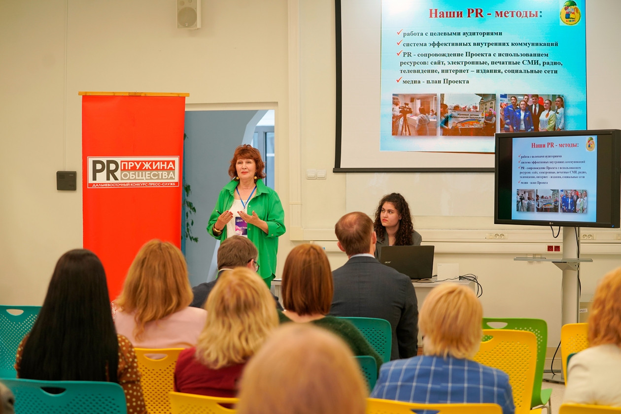 На X Дальневосточном Медиасаммите (12+) представители пресс-служб организаций бизнеса, государственных учреждений и органов власти соревновались за премию “PRужина общества” (16+), которую организует и проводит пресс-служба ВВГУ. В шорт-лист XIV Дальневосточного конкурса “PRужина общества” (16+) в сфере связей с общественностью эксперты отобрали культурные, образовательные, антикризисные, социальные и другие PR-проекты.