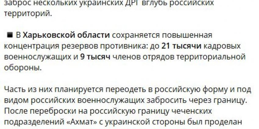 В районе населенного пункта Тимковка Харьковской области пресечена деятельность украинской диверсионно-разведывательной группы.