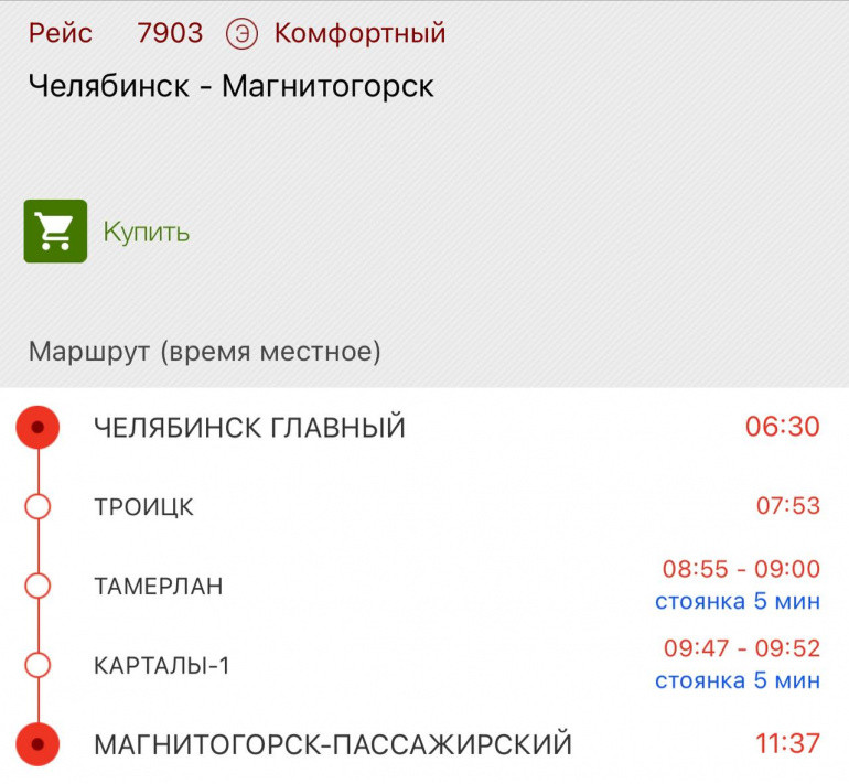 «Ласточка» № 7903 Челябинск — Магнитогорск с 20 по 23 июня и с 27 по 30 июня будет отправляться по графику. В Магнитогорск электропоезд прибудет в 11:37 (позже на 47 минут).
