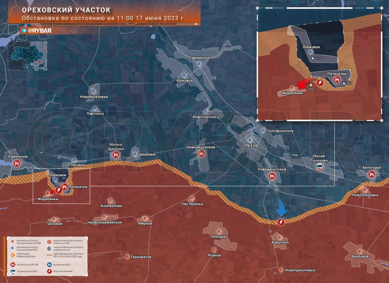 Карта боевых действий: Ореховский участок обстановка по состоянию на 12.00 17 июня 2023 года