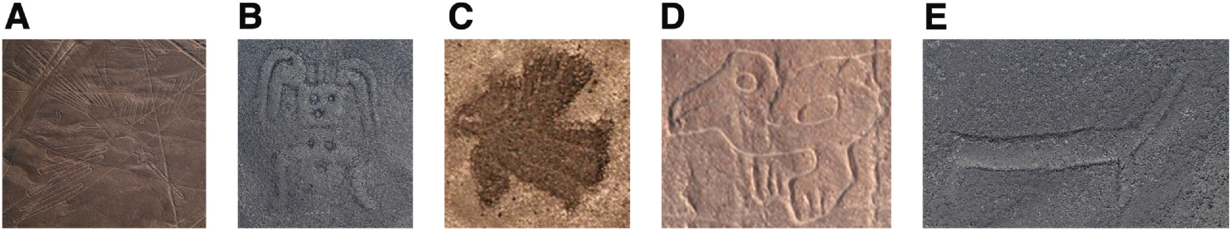 Среди новых открытий было изображение человека с украшениями или доспехами и предметом в руке, а также изображения ног, рыбы и птицы, которые напоминают стиль керамических изображений животных, созданных народом Наска.