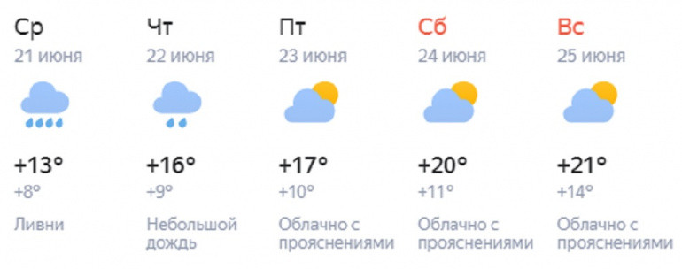 В Челябинске тоже пройдёт небольшой дождь. Днём воздух прогреется до +13…+15. По данным долгосрочного прогноза от сервиса «Яндекс.Погода», похолодание задержится до выходных. Однако и суббота с воскресеньем будут не очень тёплыми: максимум, который обещаются синоптики, — это +21 градус.