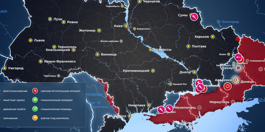 - Карта боевых действий на Украине, к утру 19 июня 2023г., от РИА Новости. Карта специальной военной операции.