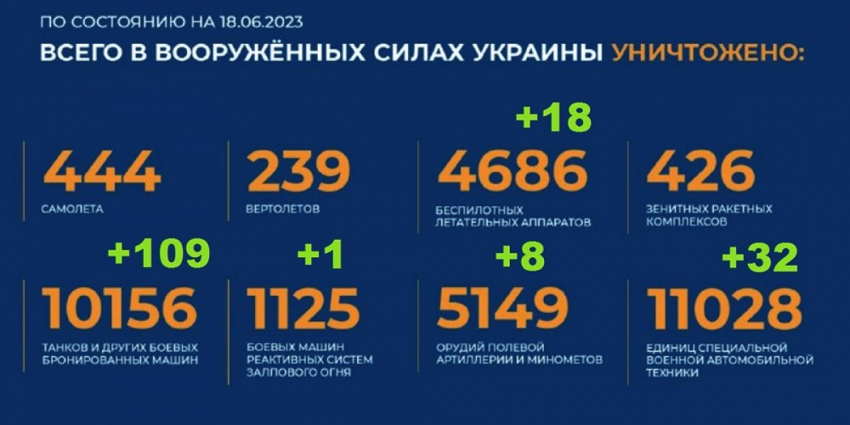- Актуальный брифинг Министерства обороны РФ о ходе проведения специальной военной операции на территории Украины по состоянию на 18 июня 2023 года. Сводка боевых действий на Украине.