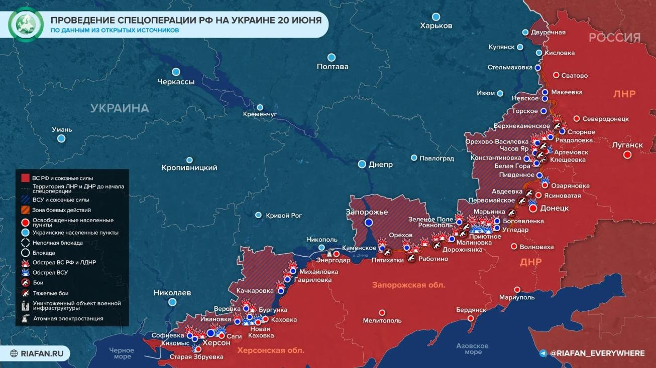 Свежие данные о ходе военной спецоперации на Украине 20 июня: последние новости сегодня