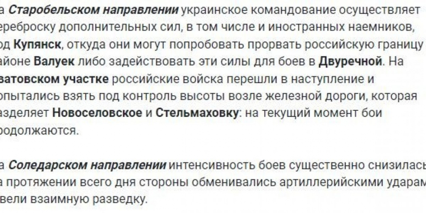 - Обстановка на фронтах за уходящие сутки: