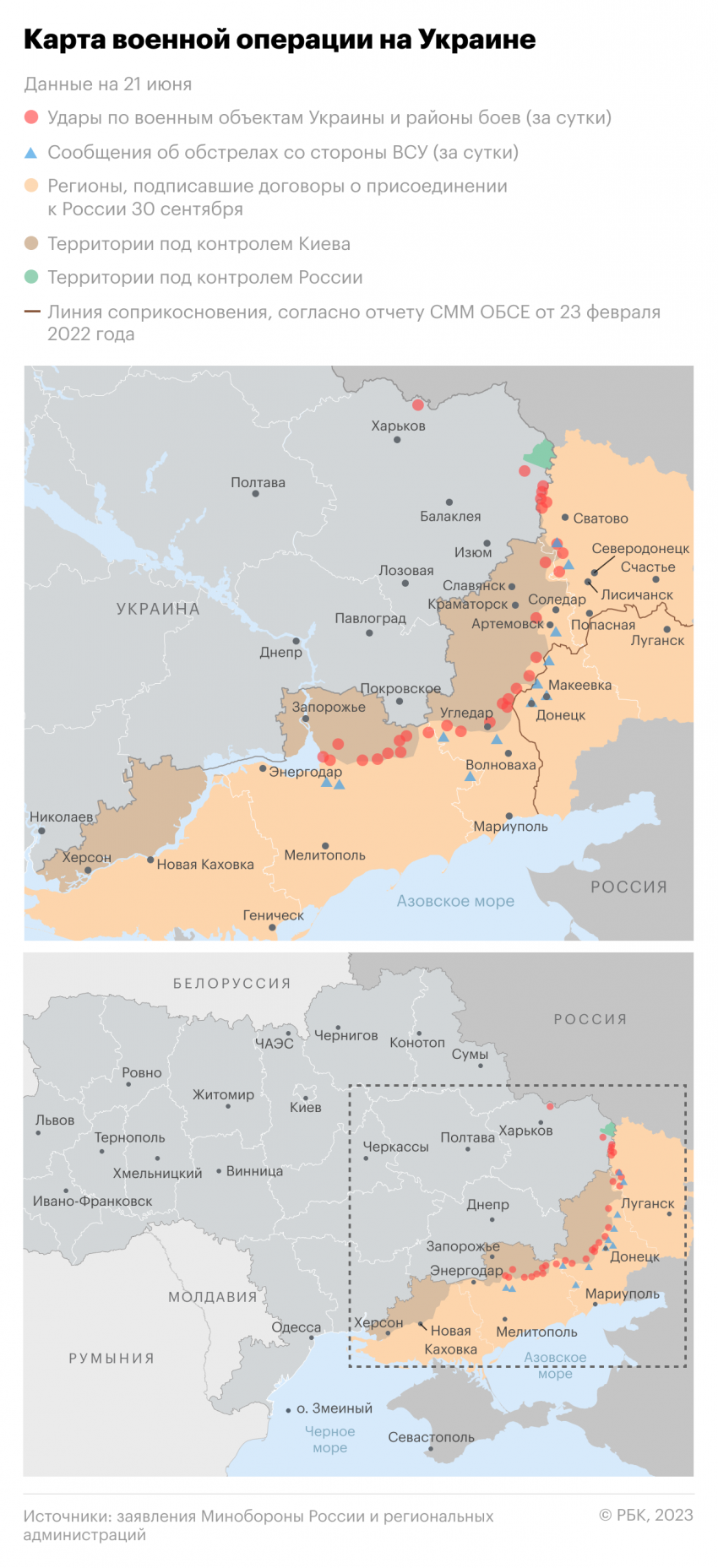 Карта военной операции, свежая карта боевых действий на Украине показывает как обстоит ситуация на всех участках фронта по данным на 22 июня 2023 года