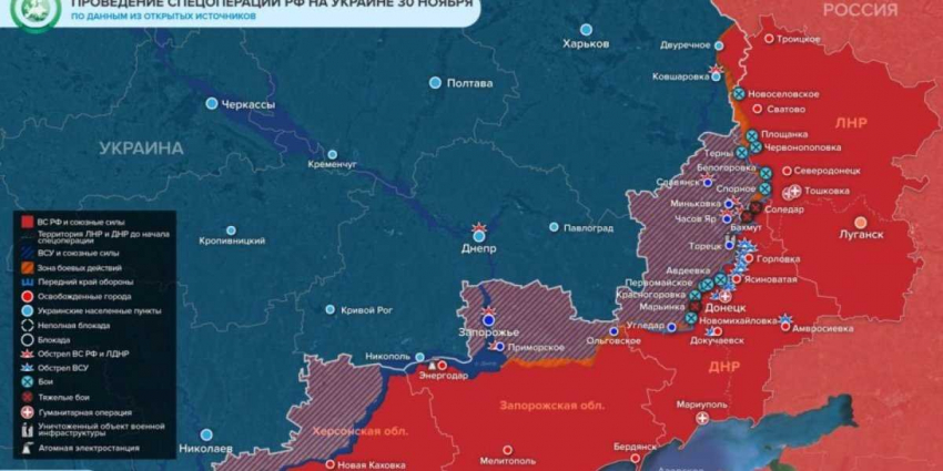 - Точная карта боевых действий на Украине сегодня, 1 декабря 2022