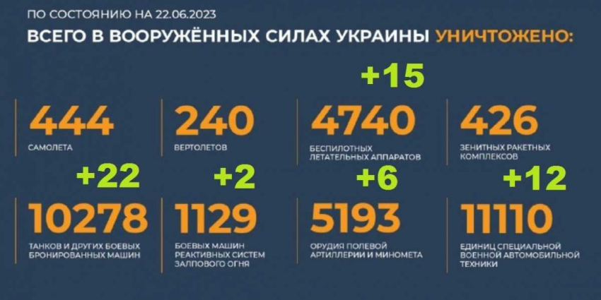 Сводка Министерства обороны Российской Федерации 22.06.2023 г.