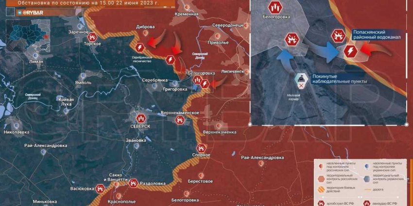 Боевые действия на Украине 22 июня 2023: новая карта боевых действий на Украине 22.06.2023. Новая карта Украины