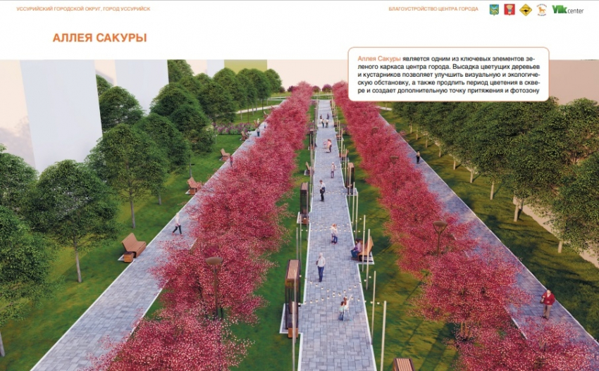 В проект благоустройства центра города вошли три участка: площадь, аллея сакуры и сквер по улице Пушкина около дома № 50.