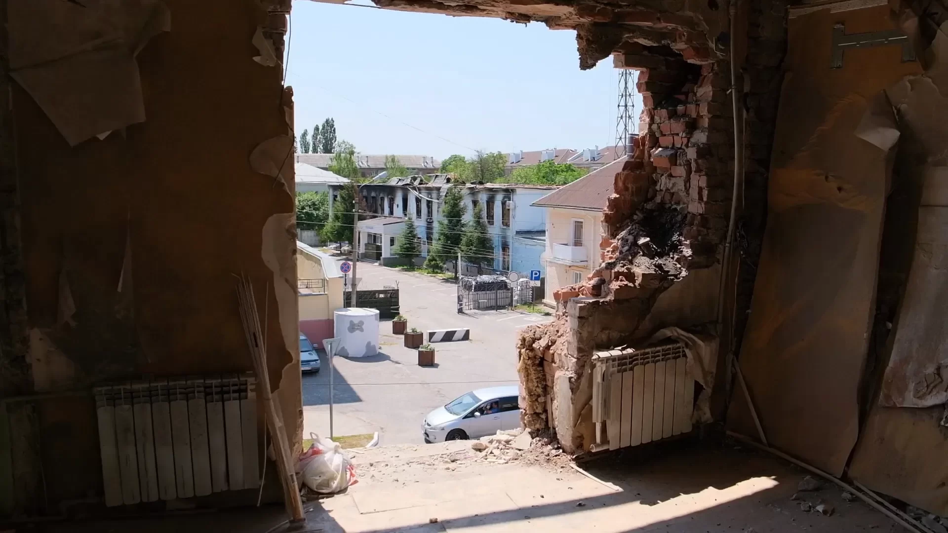 «Это наша квартира, а это квартира соседей. Вот сюда попало, пробило стену и взорвалось прямо в комнате, из-за чего продавило пол и стену в соседний подъезд, крышу, ну и перевернуло тут все», сказал отметил мужчина.