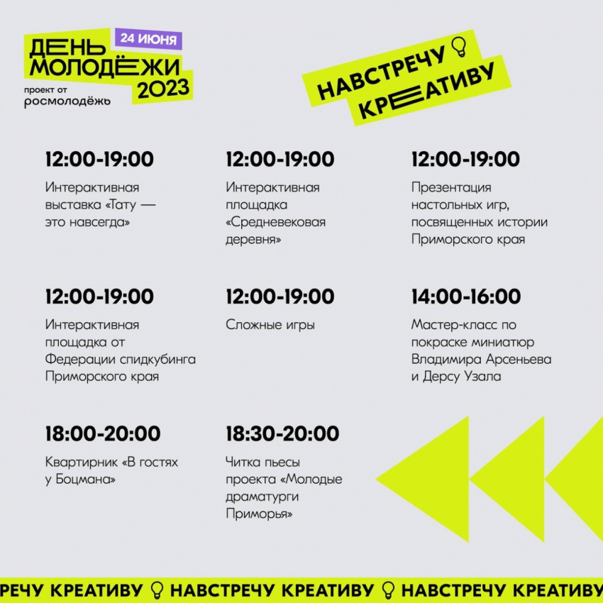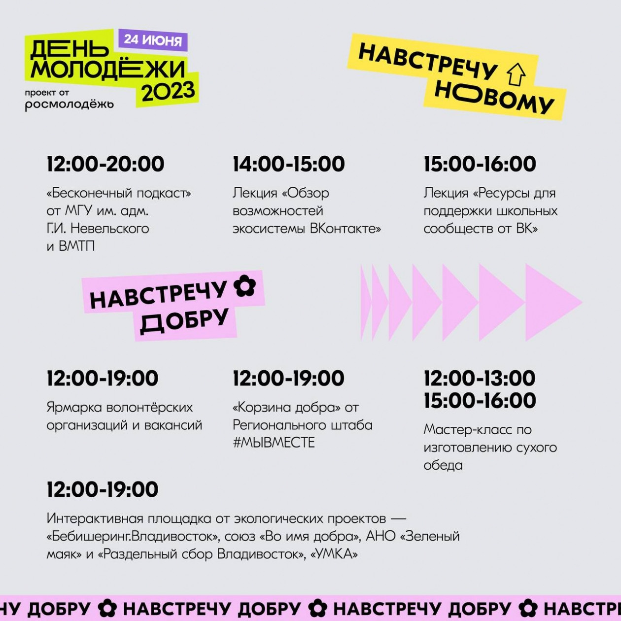 Напомним, Владивосток стал одним из 15 городов России, где пройдет Федеральный День молодежи. 24 июня на набережной Цесаревича гостей будет ждать множество тематических площадок, мастер-классы, лекции, карьерные консультации, ярмарки вакансий, выступления творческих коллективов. Кроме того, молодежь сможет присоединиться к волонтерским акциям, а также поучаствовать в спортивных активностях. Завершит концертную программу выступление музыкального дуэта RASA.