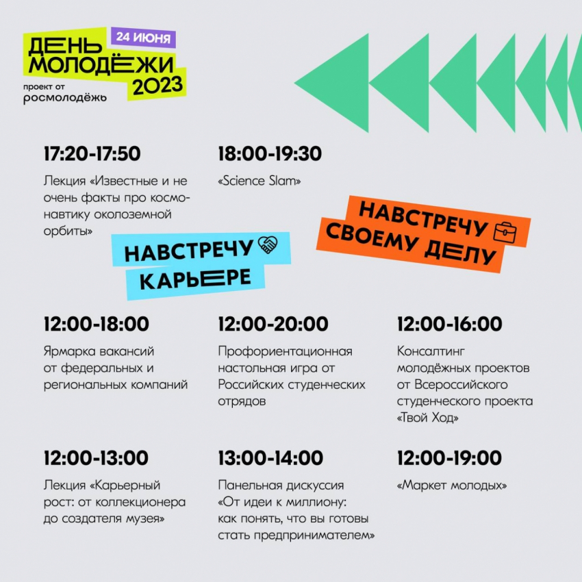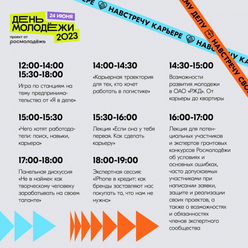 Все кто ждет победы переходим на сайт и смотрим Кого послушать на Дне молодежиЧему научитьсяОтдельная программа будет на парковке Набережной ЦесаревичаКреатив, ярмарки, волонтеры и игрыАктивности для любителей спортаКого послушать на Дне молодежи