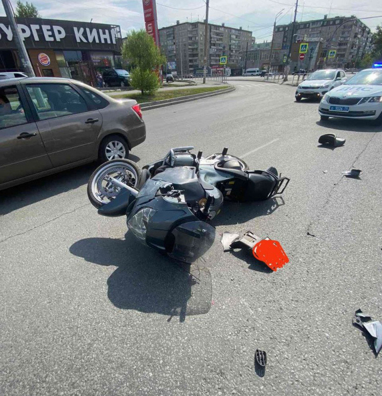 В субботу, 24 июня, в Курчатовском районе Челябинска мотоциклист врезался в Kia Rio. Как сообщили в Госавтоинспекции, перед столкновением водитель машины выполняла запрещённый манёвр.