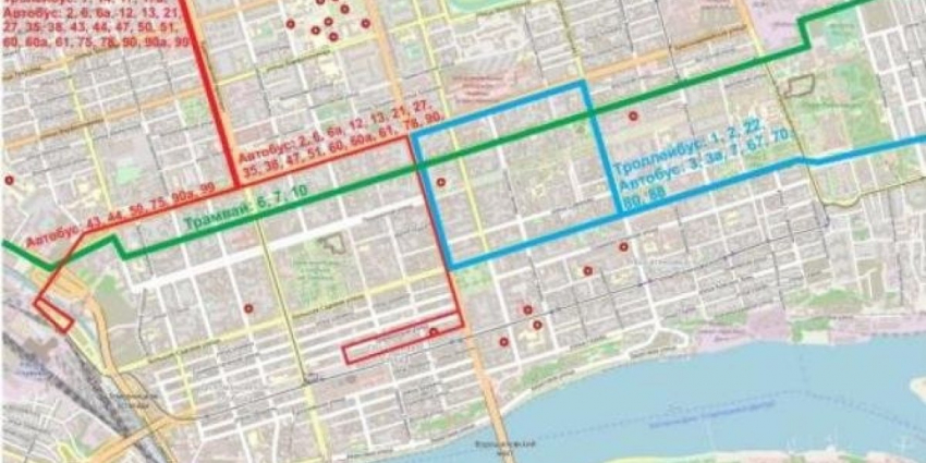 Автобусные маршруты № 2, 6, 12, 13, 21, 27, 35, 38, 47, 51, 60, 60а, 61, 78, 90 также изменены. Новая схема: проспект Буденновский — улица Красноармейская – проспект Ворошиловский – улица Темерницкая – улица Московская — проспект Ворошиловский.