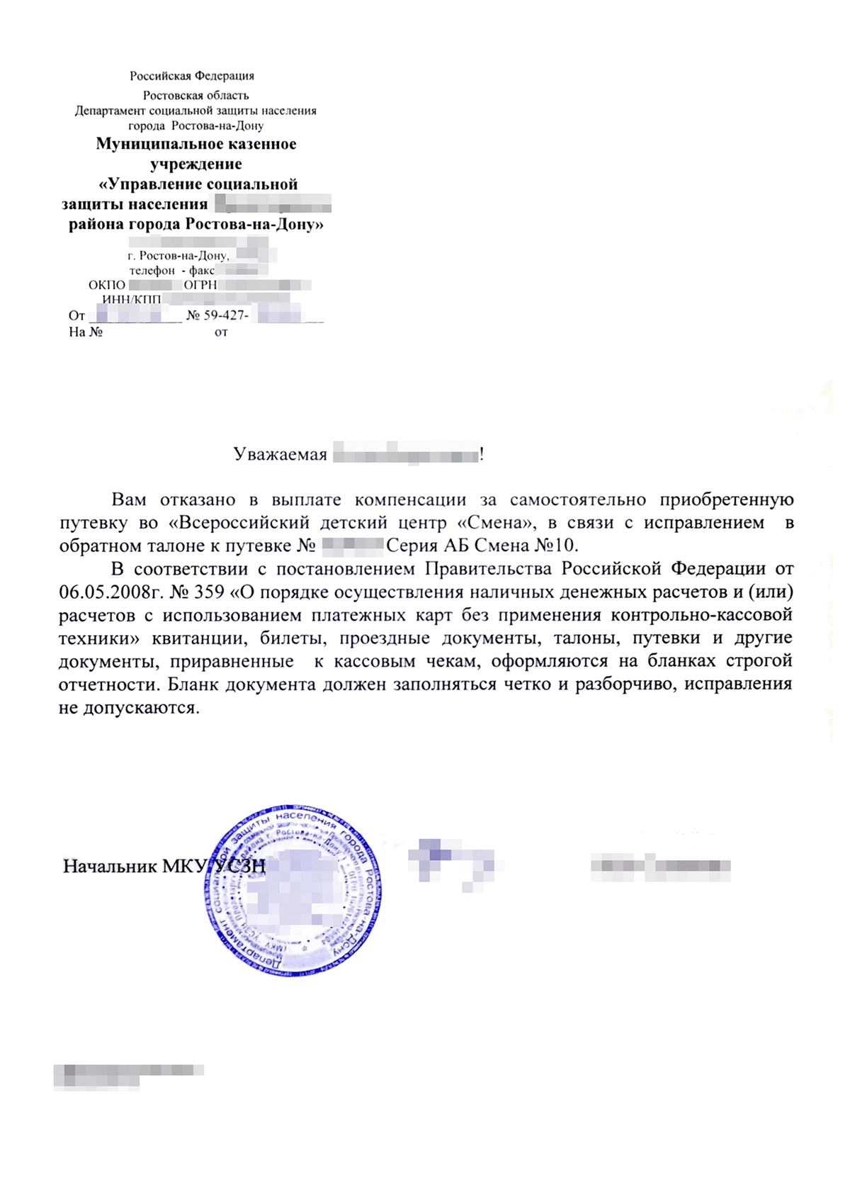 Следует отметить, что список причин для отказа в компенсации за стоимость путевки в детский лагерь ограничен. Если вам был незаконно отказано в компенсации, у вас есть основание обратиться в социальную защиту и прокуратуру с жалобой.