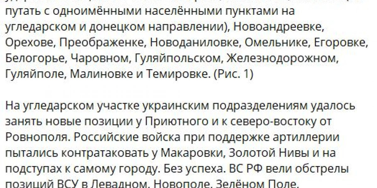 - Запорожское направление: пятихатки в серой зоне. На Ореховском и Гуляйпольском участках продолжаются ожесточенные бои, боевики пытаются атаковать российские позиции. Также враг перебрасывает резервы к передовой в районе Орехова. Кроме того, ВС РФ стоит ожидать атак ВСУ в районе Урожайного и Новодонецкого.