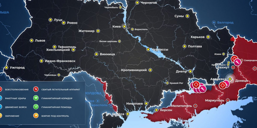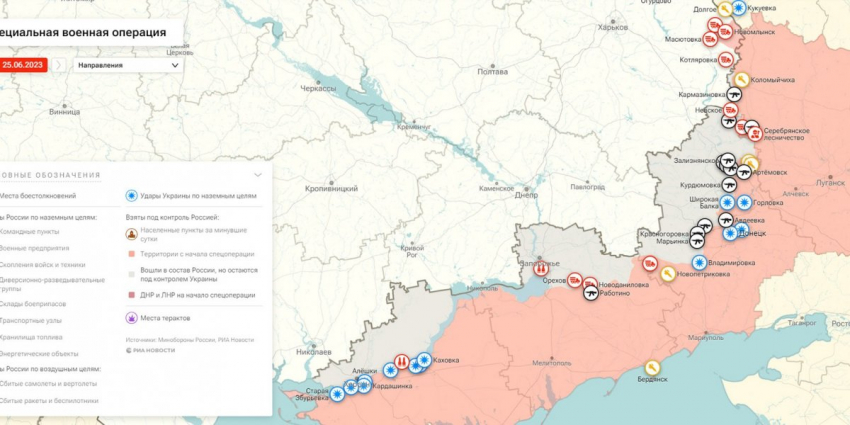 - Карта боевых действий на Украине, к утру 26 июня 2023г., от РИА Новости. Карта специальной военной операции.