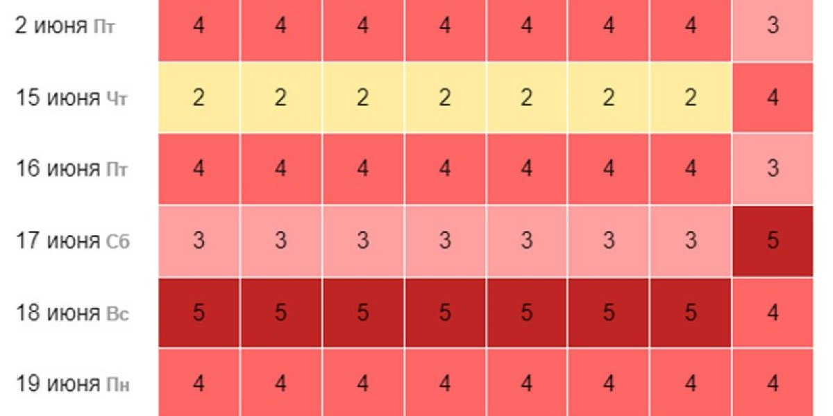 Расписание магнитных бурь на июнь 2023 г. (усреднённые значения):