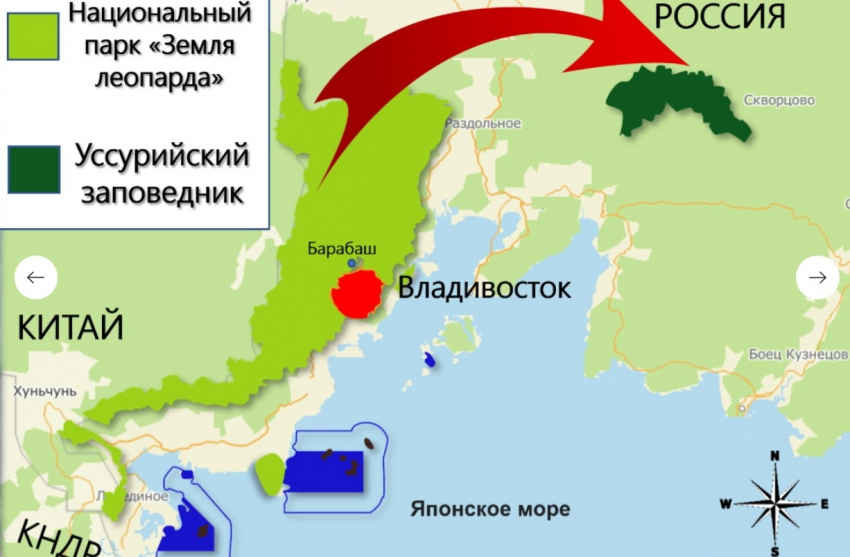 Схема переселения леопардов из нацпарка “Земля леопардов” в Уссурийский заповедник”. Фото: Национальный парк “Земля леопарда”