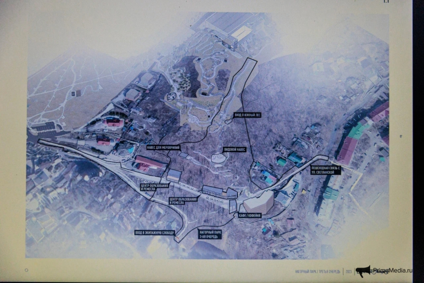 Справка: Нагорный парк находится в районе улиц Шилкинская, Тюменская и Тунгусская. В своё время именно от Нагорного парка до Гайдамака планировался еще один фуникулерный маршрут Владивостока. Постановление губернатора № 199 от 21.03.1996 именует это место “Нагорный парк “3-я Рабочая” и относит к землям рекреационного назначения. Строительство парка стартовало в 2020 году. В 2021 году была сдана первая очередь, в 2022 — вторая. Сроки строительства третьей очереди в ДНС пока не называют, но один из участков на южном склоне компания может открыть уже в этом году.