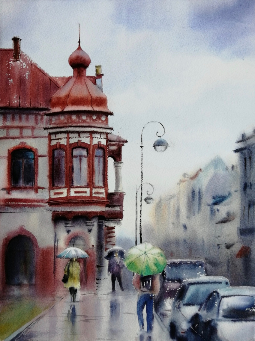 Ольга Коваленко “Дождливый день” Бумага, акварель. Фото: Предоставлено организаторами выставки