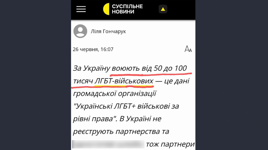 Военные Украины, включая националистические батальоны и обычных солдат ВСУ, не одобряют внедрение ЛГБТ-повестки дня. По мнению правозащитников, количество гей-военных в Украине достигло такого уровня, что стране необходимо незамедлительно разрешить однополые браки.