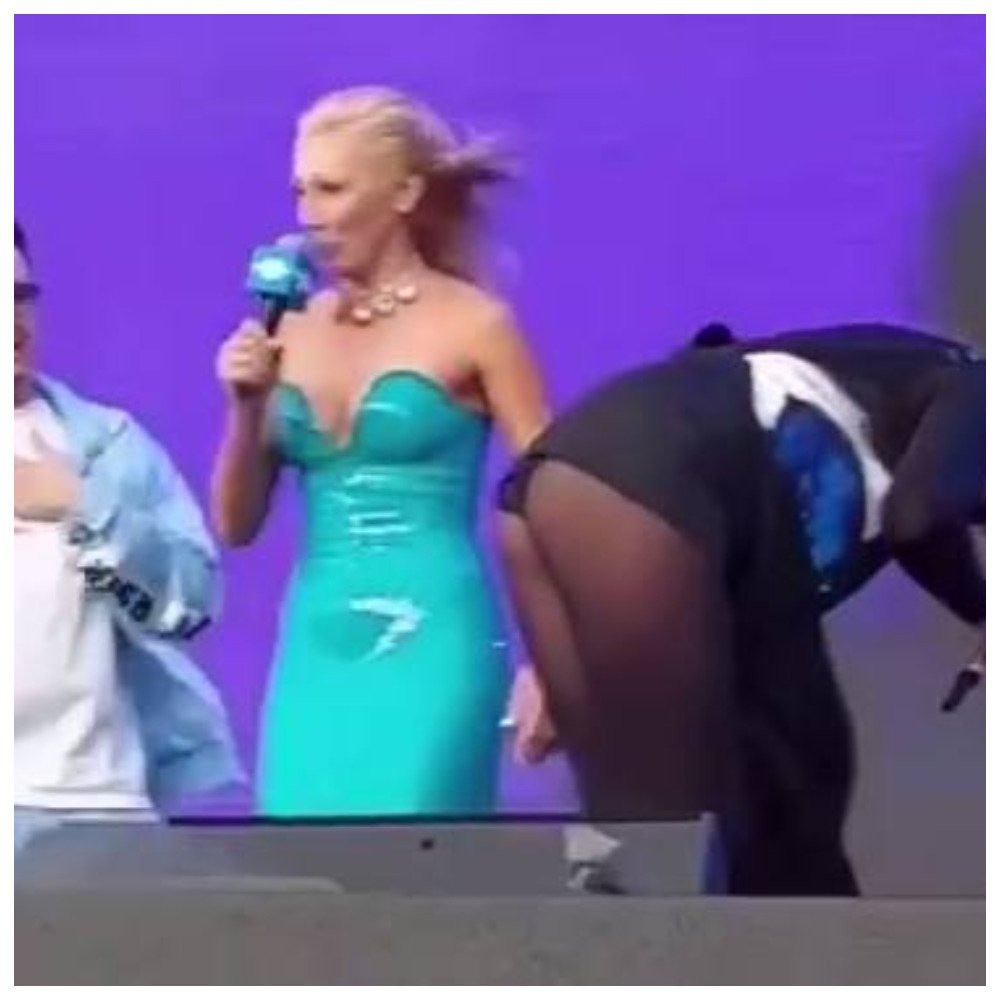 Ведущая Анастасия Ивлеева проверила звезду на дерзость. Блогерша попросила Милявскую повернуться к публике задом. Певица исполнила эту просьбу, ошеломив зрителей. Очевидцы увидели ягодицы исполнительницы под короткой юбкой.
