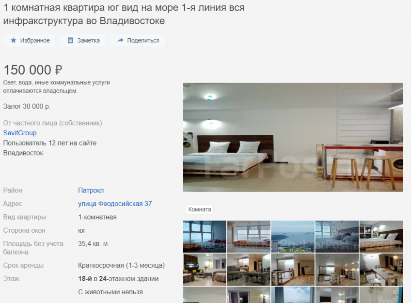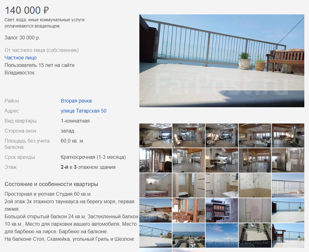 Дорогая аренда во Владивостоке. Фото: Скриншот