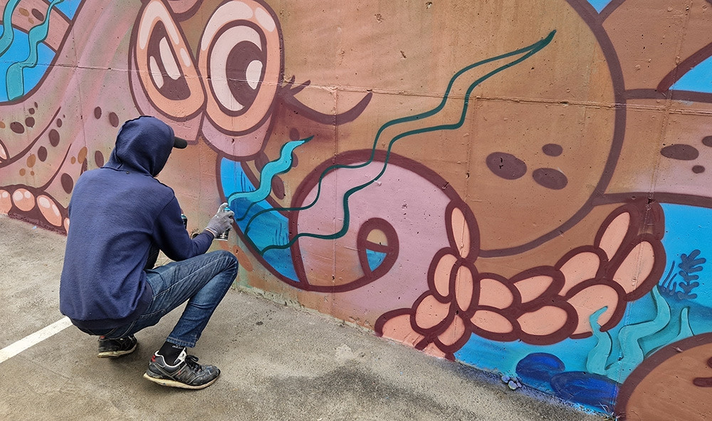 Стартом проекта “ЭкоУлица” стало декорирование на экологическую тематику двух бетонных стен возле домов № 3 и № 15 на улице Сочинской. Эта работа позволила повысить эстетическую привлекательность двух площадок для сбора ТБО. Партнеры проекта — профессиональные художники со 2 по 4 июня мастерски привели стены в порядок.