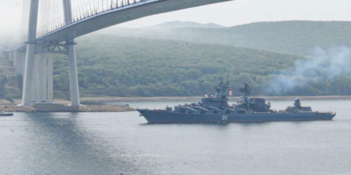 Ракетный крейсер принимает участие в оперативном учении Тихоокеанского флота России 4 июня 2023 года.