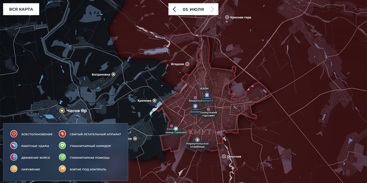 - Карта боевых действий на Украине сегодня, обстановка 5 июля 2023 года от Mash. Бои на Артёмовском направлении