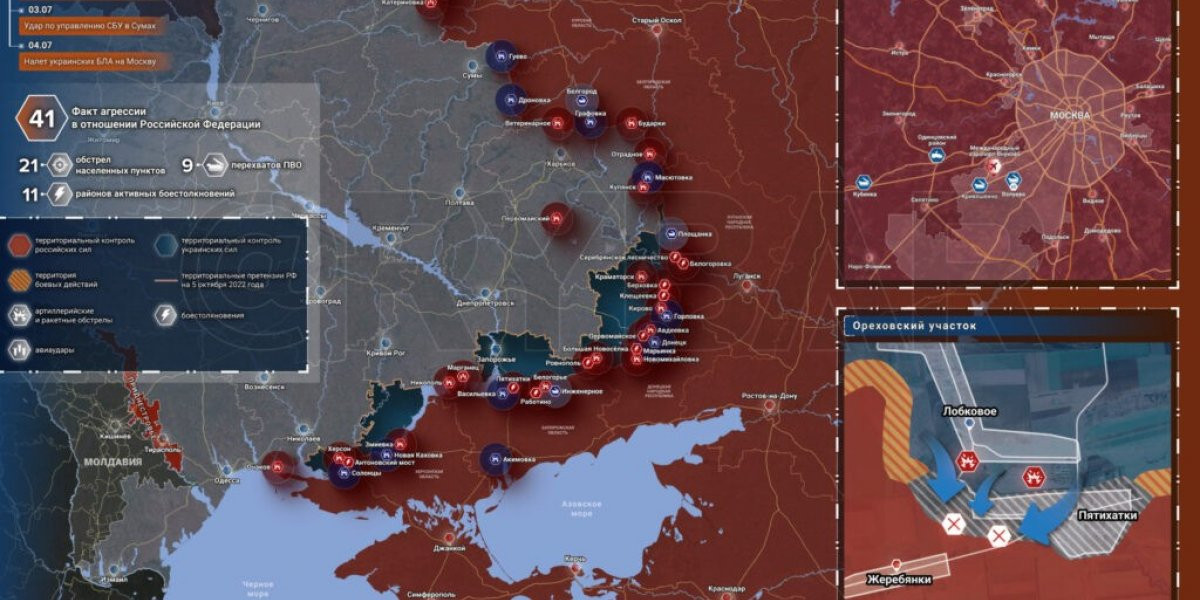 - Карта боевых действий на Украине сегодня, Общая обстановка 5 июля 2023 года от Mash