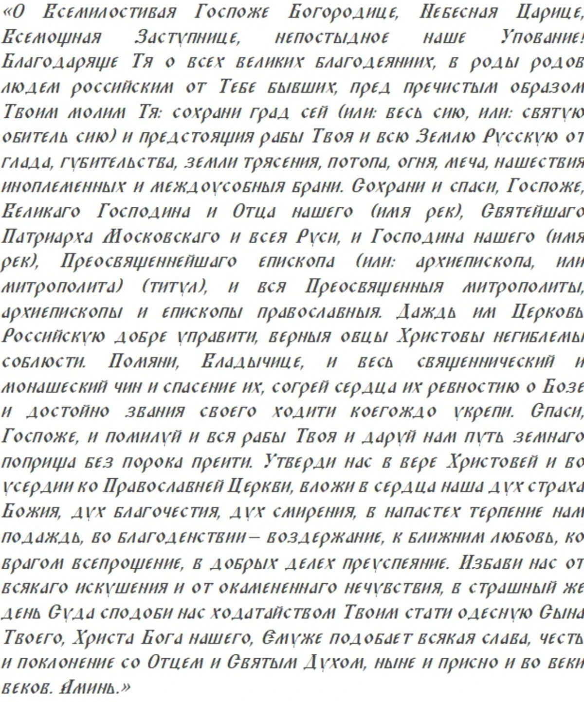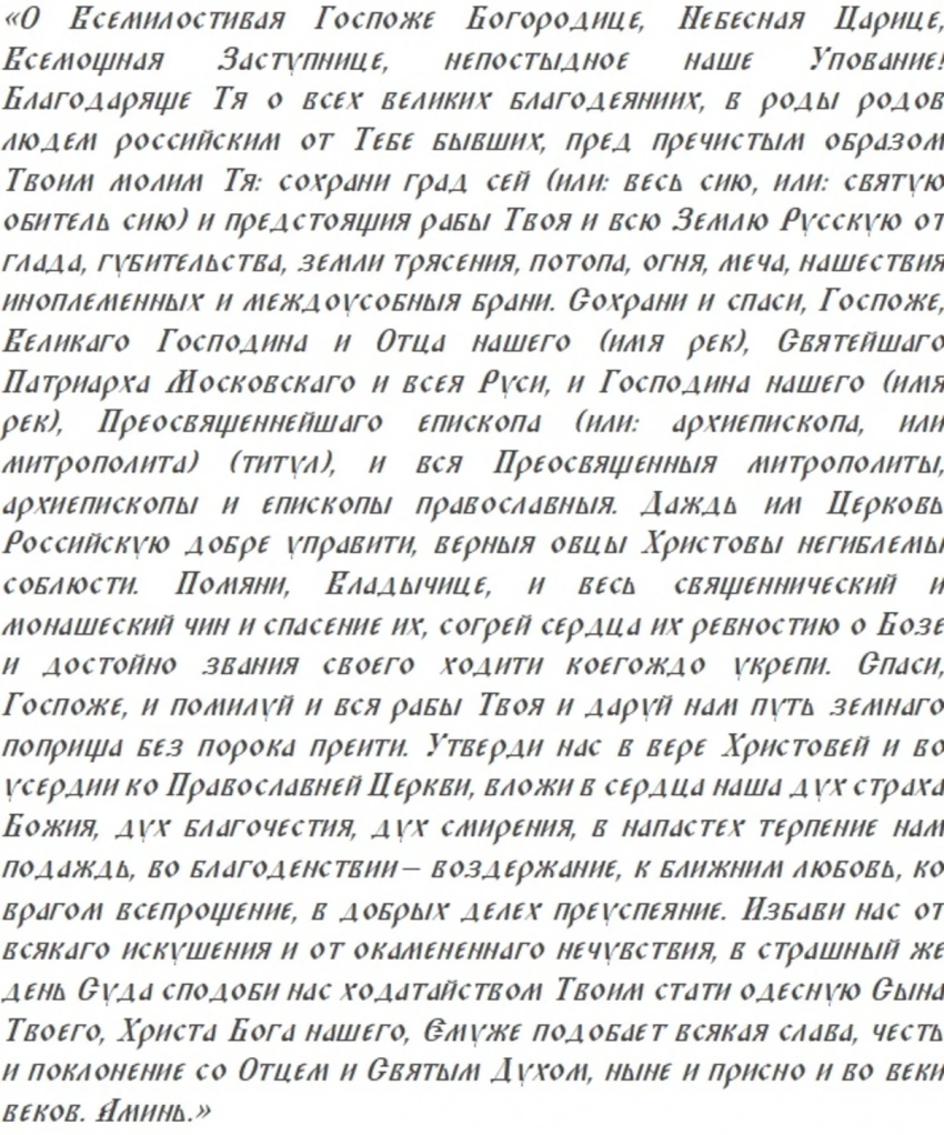 Во время молитвы рекомендуется находиться в одиночестве со своими мыслями, сосредоточиться и пропустить слова сквозь сердце, обращаясь к священному образу всей душой.
