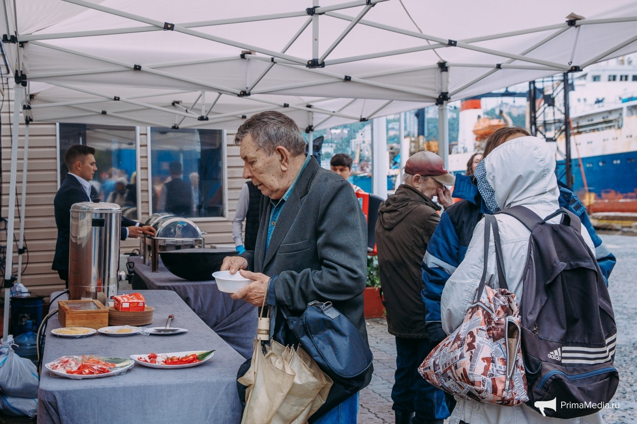 Несмотря на “морскую” дождливую погоду, настроение у гостей праздника выдалось по-настоящему солнечным, на родной причал пришли более 120 человек. Каждый из них ждал тёплой встречи с коллегами и душевных бесед на одном, “рыбацком”, языке. Кроме живого общения, на родном причале ветеранов ждали приятная музыка, поздравления и обязательная часть Дня рыбака — филе минтая от завода “Русский минтай”.