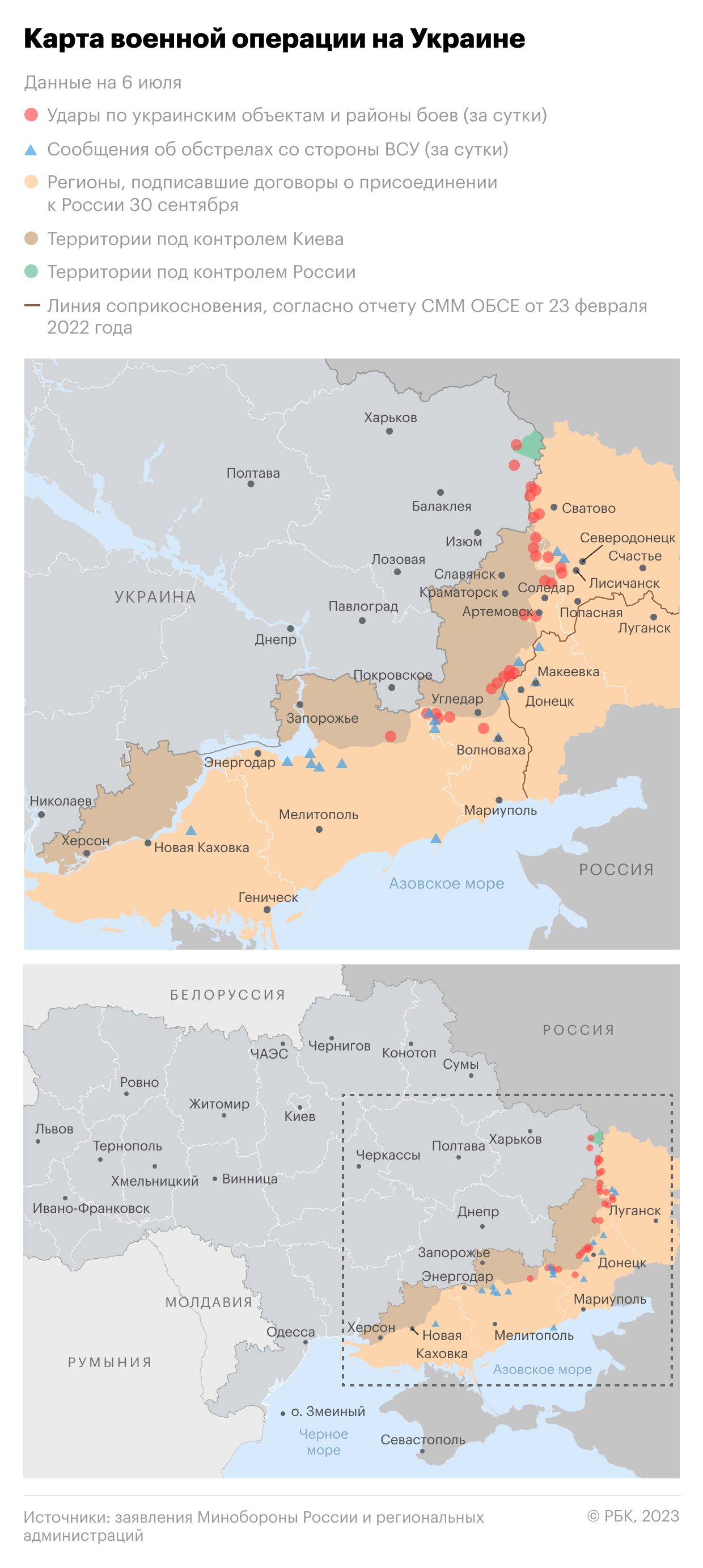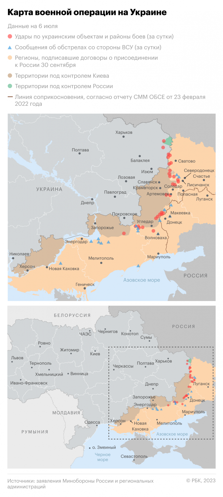 Обновленная карта боевых действий на Украине по данным на утро 7 июля — Минобороны обновило новую карту боевых действий 7.07.2023