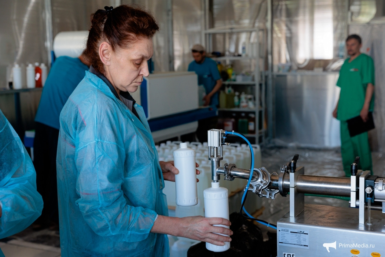 Практически всё оборудование завода — отечественное. Производственные линии — из Новосибирска и Саратова, машины для водоподготовки — из Москвы, реакторы закупили прямо на месте, во Владивостоке. Термоусадочную машину привезли из Китая.