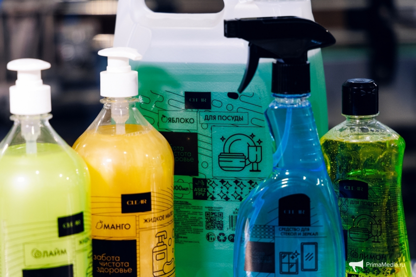 Под брендами “CLEAR”, “Скандинавия”, “Стандарт” сейчас выпускают жидкие мыла, средства для мытья посуды, поверхностей, стекол, чистящие средства для сантехники — в общем, всё, что необходимо в быту. Рецептуры средств разрабатывают в собственной лаборатории с участием технолога.