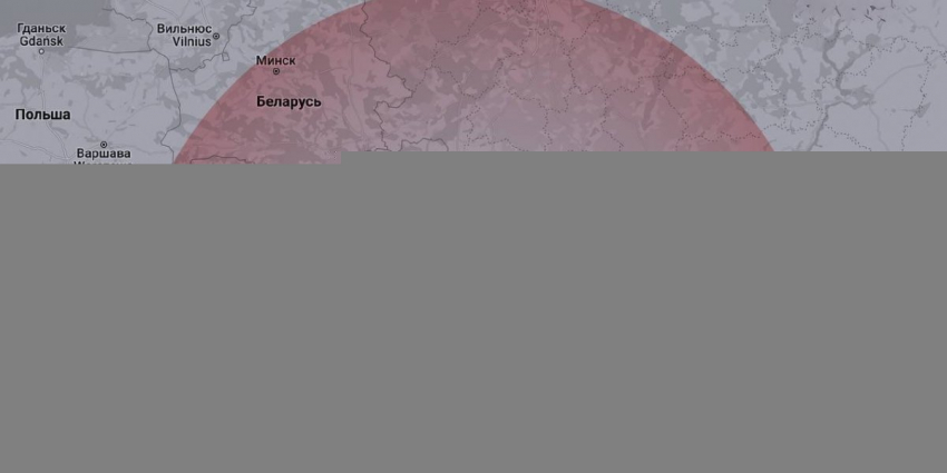 Карта с радиусом поражения радиацией при взрыве Запорожской АЭС