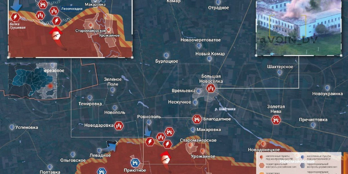 Подразделения 31 омбр и 36 обрмп ВСУ ведут ползучее наступление на Балку Грушевую со стороны Левадного и Ровнополя при поддержке артиллеристов 72 омбр ВСУ, пытаясь взять российских военнослужащих в полукруг вдоль естественной преграды.
