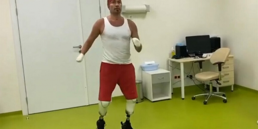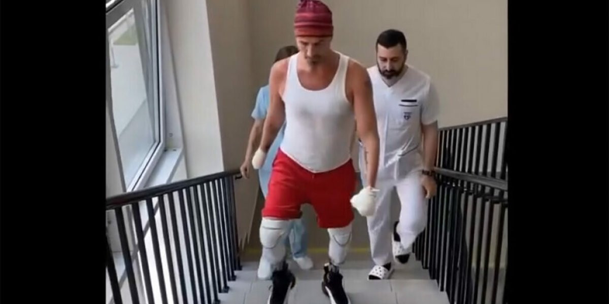 Воодушевленный поддержкой, затем он показал еще две тренировки: как он поднимается вверх по лестнице, совершает последовательные махи ногами и тренируется на беговой дорожке. Во всех случаях Роман Костомаров демонстрирует отличное владение телом – он стоит без поддержки и сохраняет на протезах баланс, заметно, что у него после экстремального похудения в реанимации вновь укрепились мускулы. «Как же спорт и тренировки отвлекают от всего происходящего в моей жизни», – говорит о необходимости тренировок сам Костомаров.