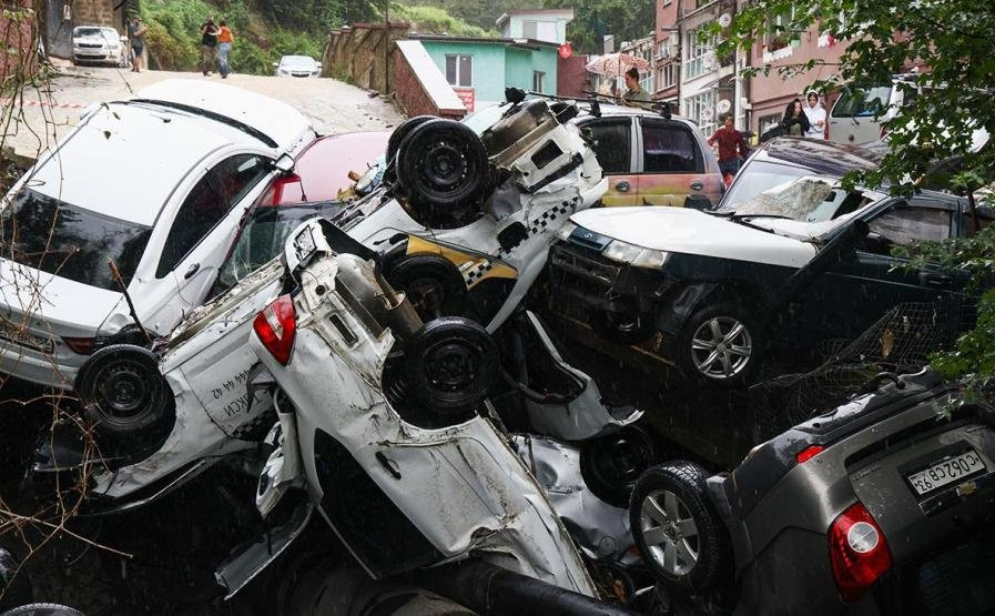 В Сочи мощным потоком воды унесло 10 припаркованных машин